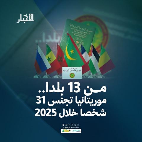 منحت موريتانيا جنسيتها لـ31 شخصا خلال العام 2025، في رقم قياسي مقارنة مع الأعوام السابقة، حيث كان