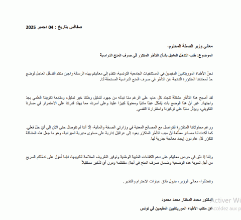 قال الأطباء الموريتانيون المقيمون في المستشفيات التونسية إن تأخر المنح أصبح مشكلة تتجدد كل عام.