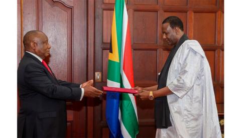سلم سعادة السيد أميدي كامارا، يوم الخميس، أوراق اعتماده لفخامة السيد سيريل رامافوزا، رئيس جمهورية