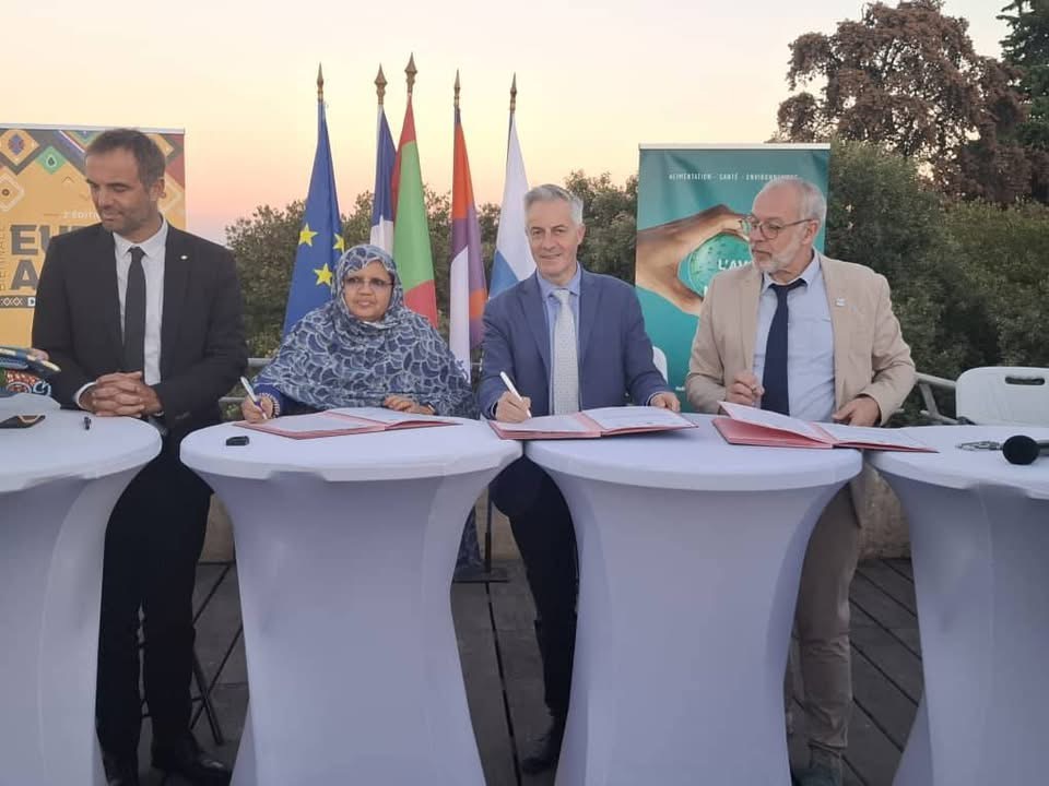 وقعت السيدة فاطمة بنت عبد المالك رئيسة جهة نواكشوط مساء اليوم الاثنين 6 أكتوبر 2025 اتفاقية منحة لتمويل مشروع جهة نواكشوط لتحسين الولوج للماء والصرف الصحي وذلك على هامش مشاركتها في النسخة الثانية من " المنتدى الأوروبي الإفريقي الذي ينعقد كل سنيتين في مونبلييه la Biennale Euro-Africa de Montpellier. ويعتبر هذا المنتدى لقاء هاما لتعزيز التعاون والروابط بين المجموعات المحلية والشبكات في أوروبا وأفريقيا وذلك بحضور أكثر من 900 مشاركا.