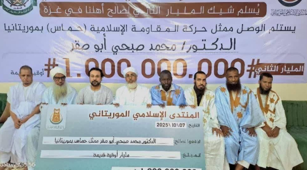 ويعدّ هذا المليار هو الثاني الذي يقدّمه المنتدى لممثل حركة حماس في موريتانيا.