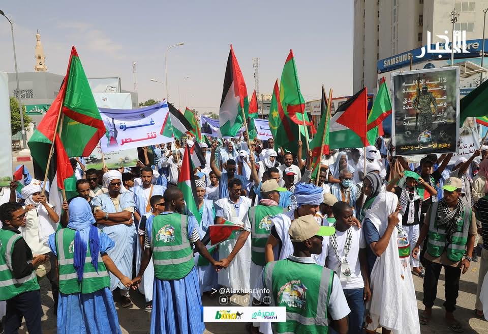 نظم الرباط الوطني لنصرة الشعب الفلسطيني عقب صلاة الجمعة مسيرة حاشدة في نواكشوط احتفاءً بوقف الحرب على غزة.