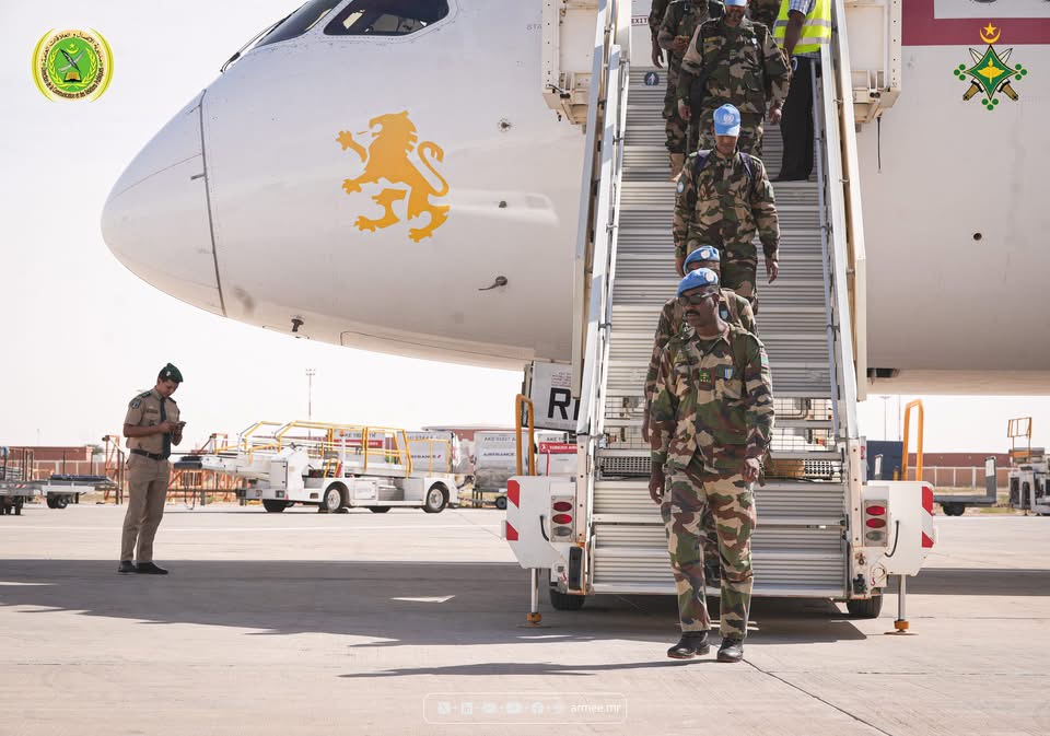 وصل زوال اليوم الأحد 30 نوفمبر 2025، إلى مطار نواكشوط الدولي – أم التونسي، الفوج الثاني من الكتيبة الموريتانية التاسعة لحفظ السلام، بقيادة الرائد محمد اوداعه، قادما من العاصمة بانغي، وذلك بعد انتهاء مهمته ضمن بعثة الأمم المتحدة متعددة الأبعاد لتحقيق الاستقرار في جمهورية إفريقيا الوسطى (مينيسكا).