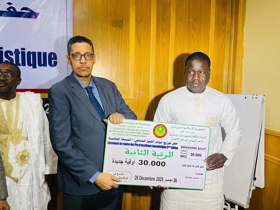 فيما أوضح رئيس السلطة العليا للصحافة والسمعيات البصرية، السيد محمد عبد الله لحبيب، أن جائزة التميز الصحفي لن تحقق أهدافها المنشودة إلا من خلال التزام الصحفيين بالمعايير المهنية وتحملهم لمسؤولياتهم، مشددًا على أهمية أن يكون الصحفي رقيبًا على نفسه قبل أي وصاية أخرى.