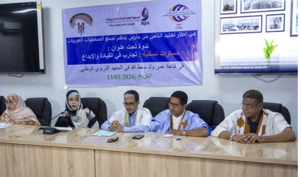 نظم تجمع الصحفيات العربيات، مساء الجمعة بالمعهد التربوي في نواكشوط، ندوة ثقافية بعنوان “مسارات نسائية: تجارب في القيادة والإبداع”، وذلك في إطار تخليد اليوم العالمي للمرأة.